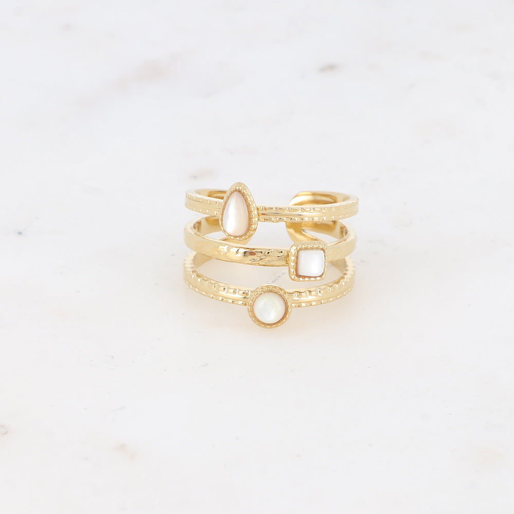 BAGUE LARGE SRILAJA - 3 RANGS - 3 CABOCHONS / DIFFERENTES COULEURS
