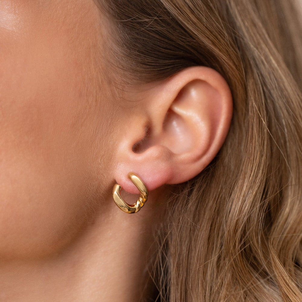 Boucles d'oreilles à puce en acier inoxydable composées d'un anneau losange lisse et torsadé.