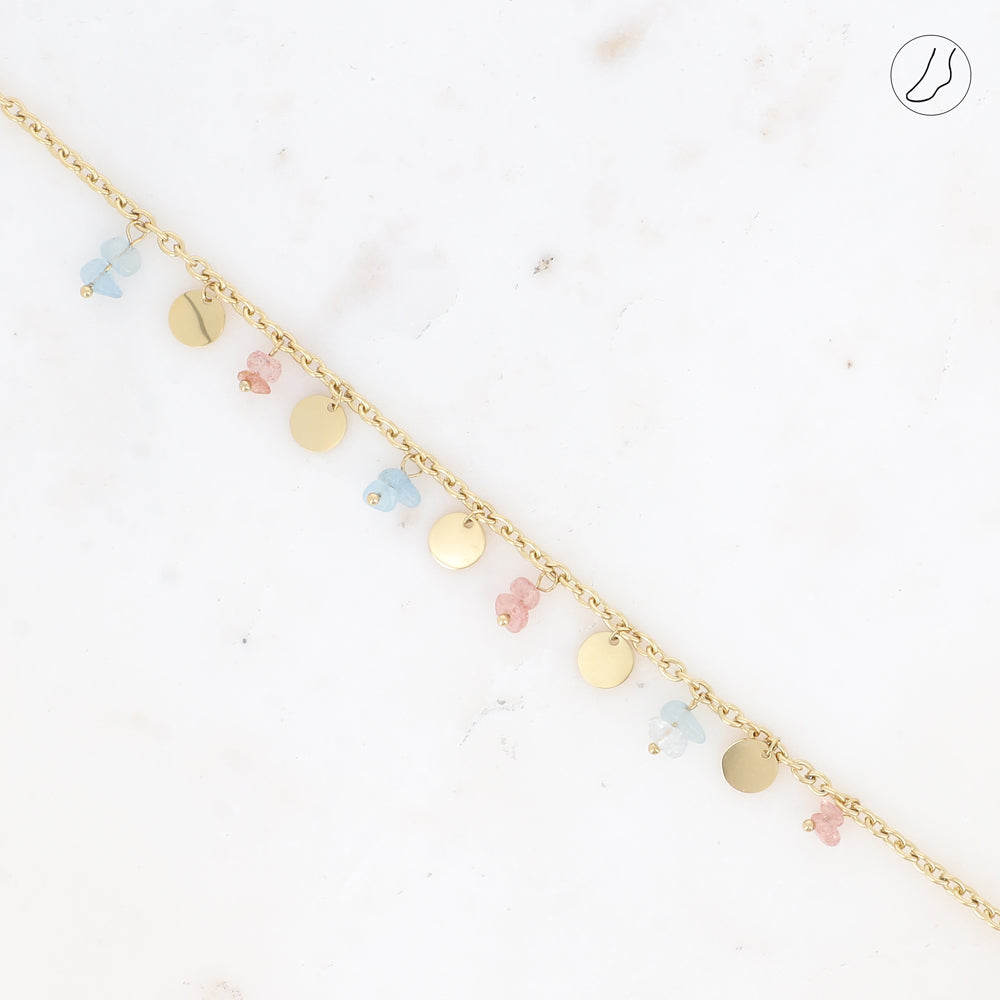 BRACELET DE CHEVILLE - PAMPILLES RONDES LISSES ET PIERRE NATURELLES