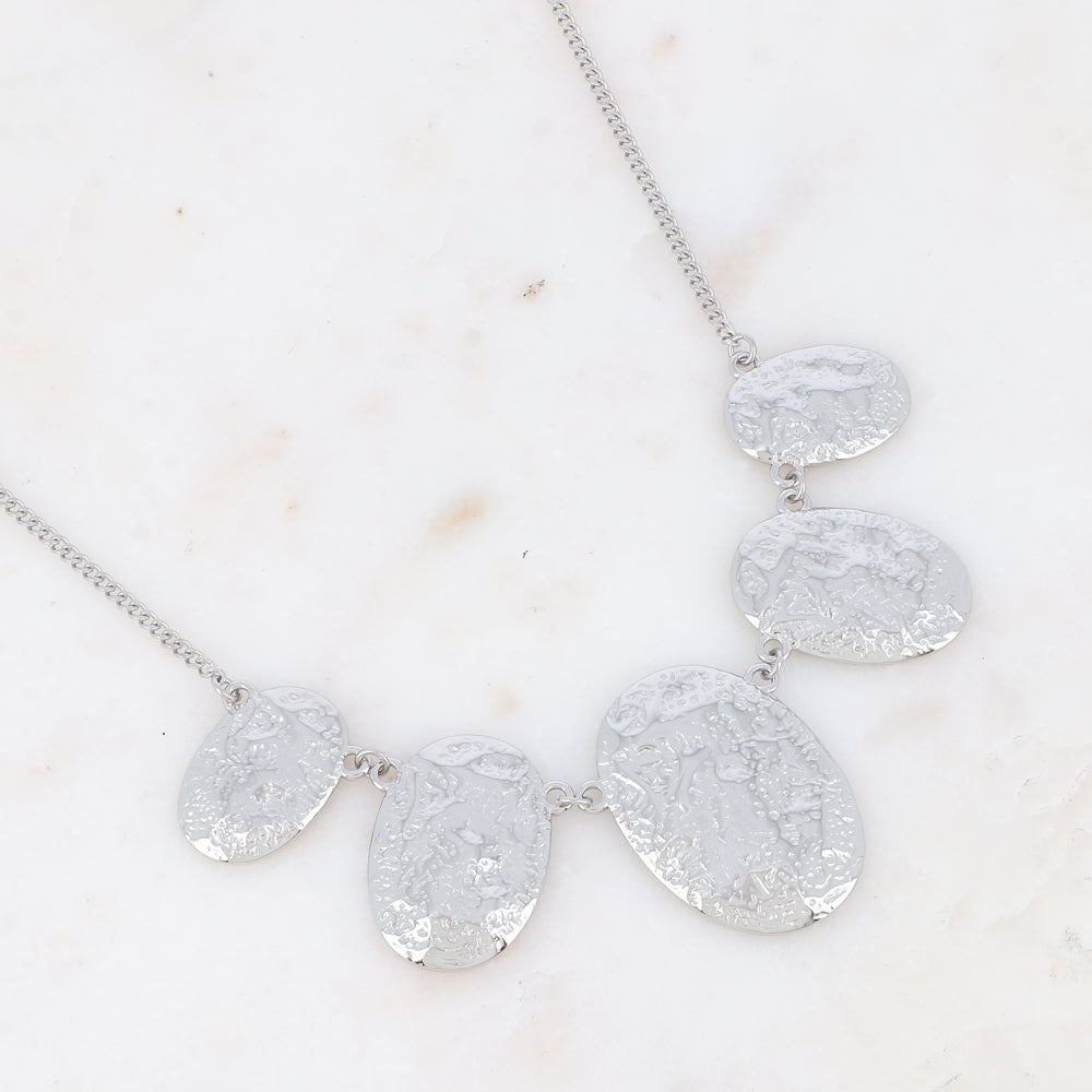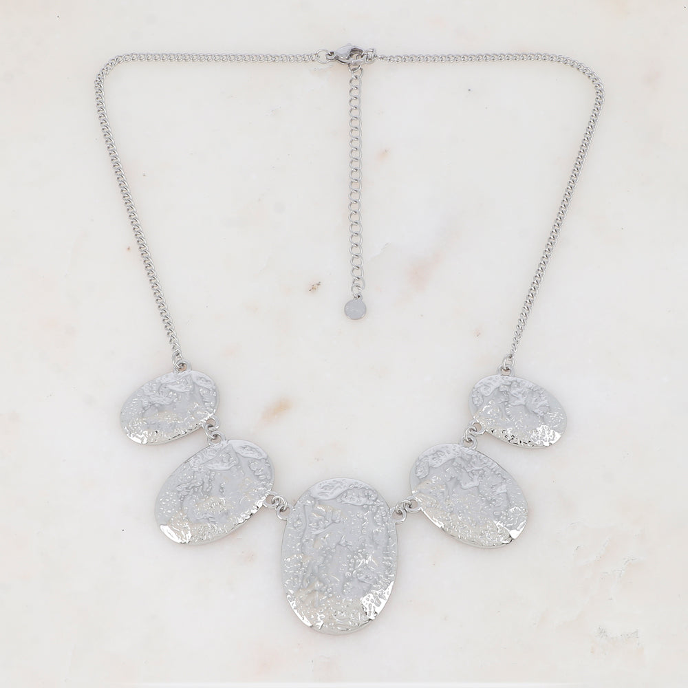 Collier réglable sur chaîne composé de plusieurs pièces martelées.