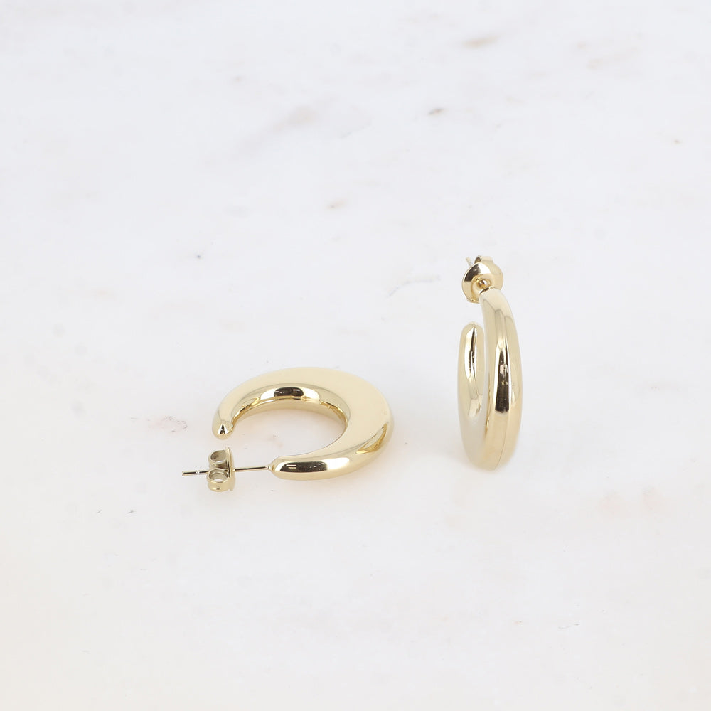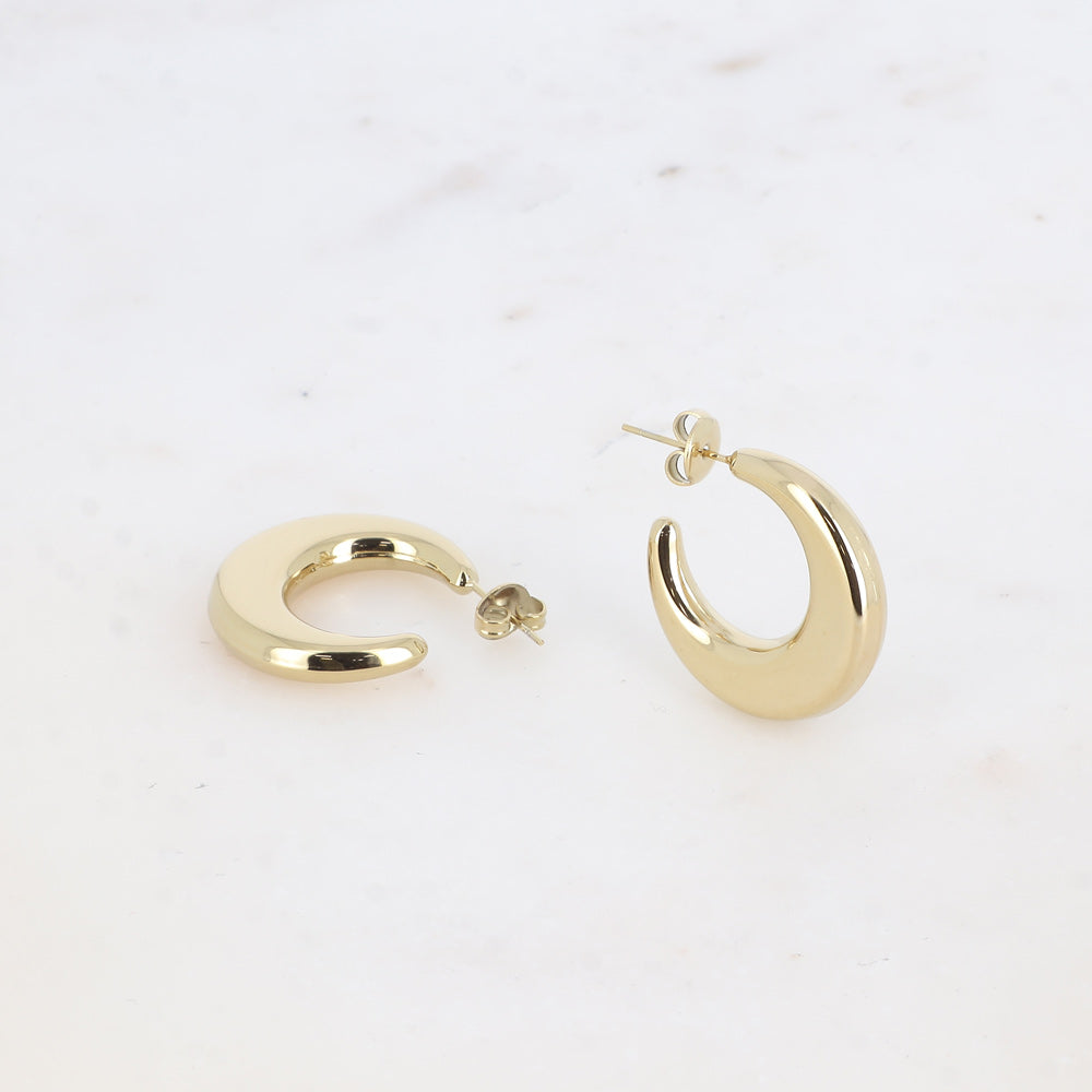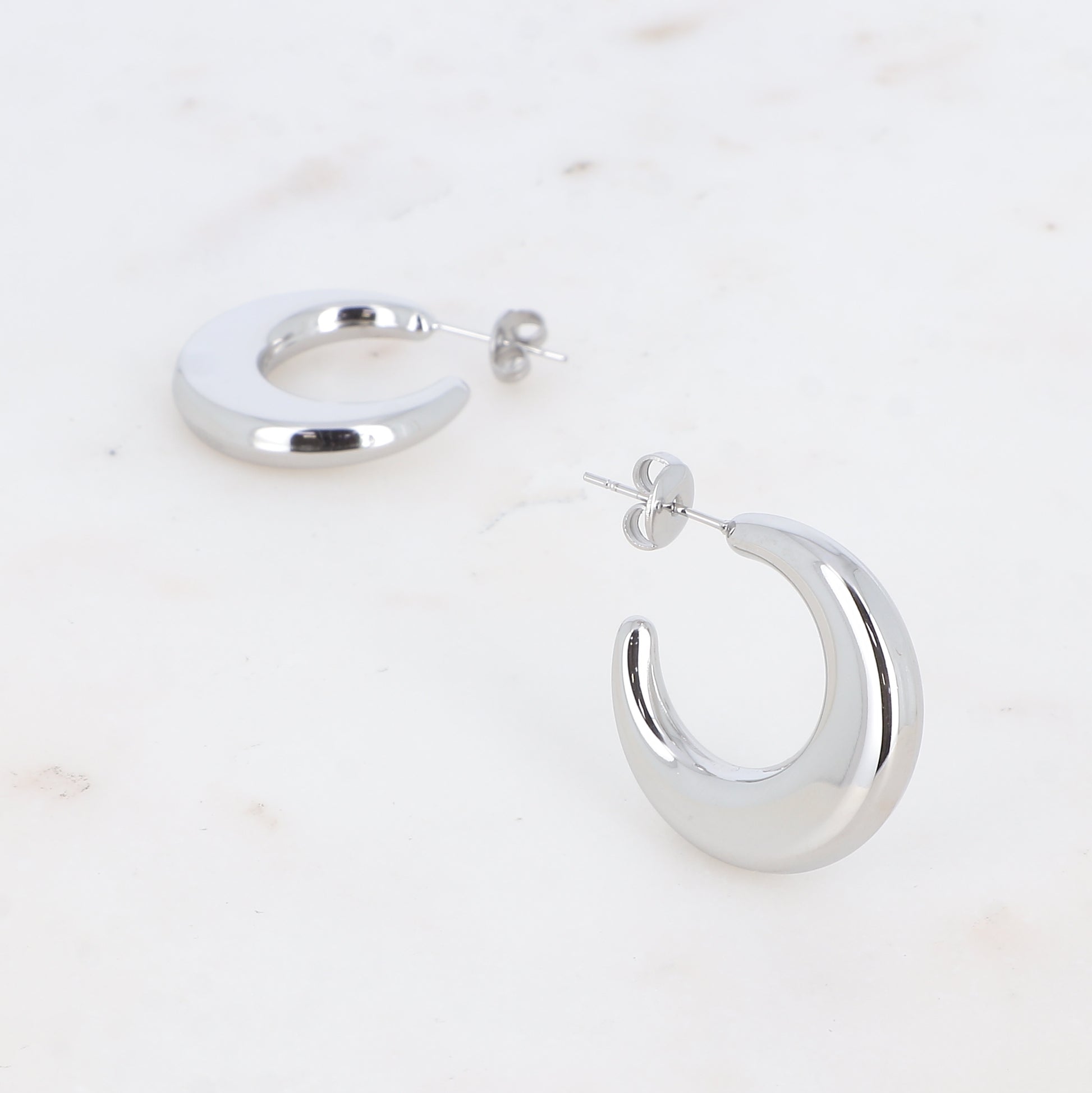 Boucles d'oreilles type créoles en acier inoxydable composées d'une anneau en forme de croissant de lune plat.