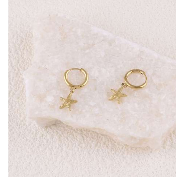 Boucles d'oreilles type créoles avec fermoir à charnière en acier inoxydable composées d'une étoile du Nord.