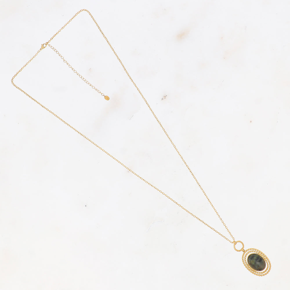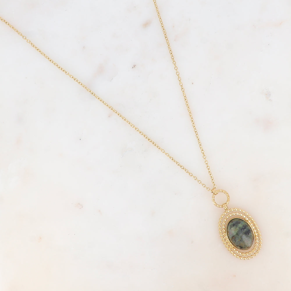 SAUTOIR - PENDENTIF OVALE EN PIERRE NATURELLE